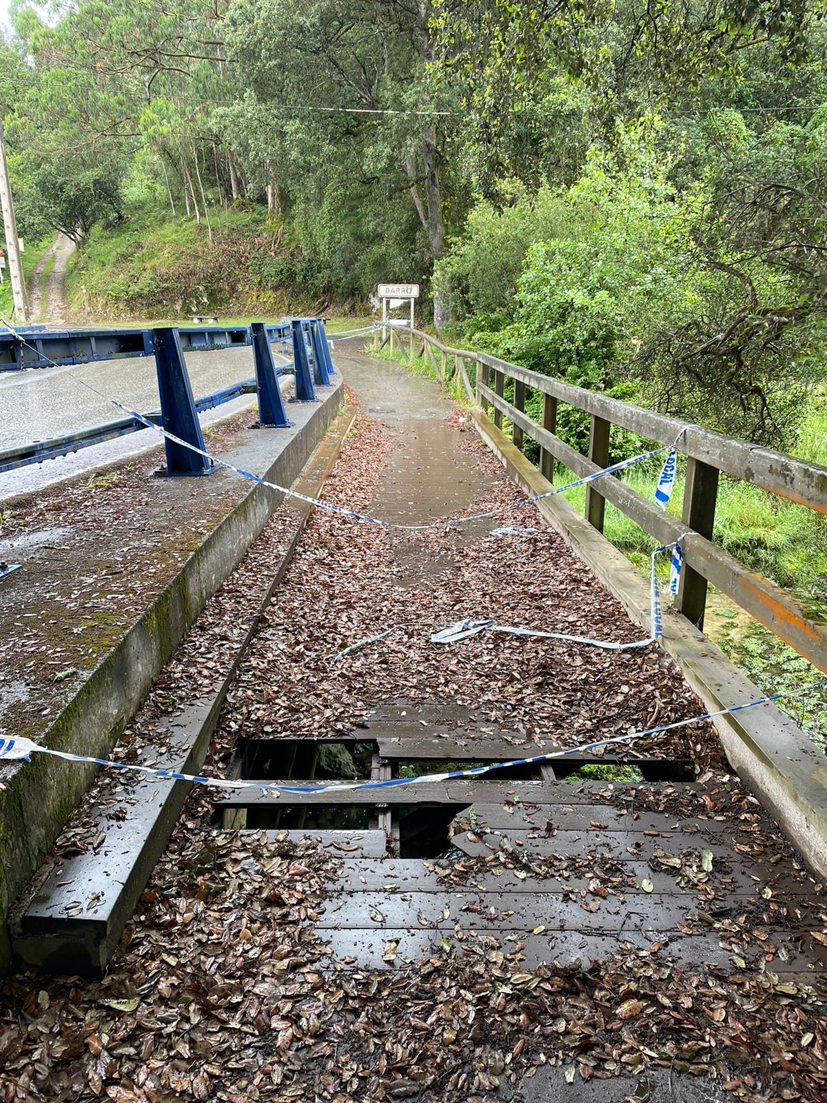 Pero no solo son desbroces y limpieza lo que falta, también, en muchos puntos del concejo los turistas y los vecinos se encuentran con graves deficiencias de seguridad. Como es el caso de las alcantarillas rotas o del puente peatonal que comunica las localidades de Barru y Niembru, a la altura de la capilla de ánimas la plataforma de madera por la que deberían transitar los peatones lleva meses rota por una clara falta de mantenimiento, como se puede apreciar en las fotografías. Esta situación obliga a los viandantes a tener que atravesar este tramo por la estrecha carretera. «Es una vergüenza que los vecinos y turistas que pasean entre Niembru y Barru tengan que jugarse la vida porque Enrique Riestra no haya querido arreglar la pasarela de madera» ha criticado Antonio Trevín, a la vez que remarca: «la única solución que ha dado Riestra es poner una cinta de la Policía Local», concluye Trevín.